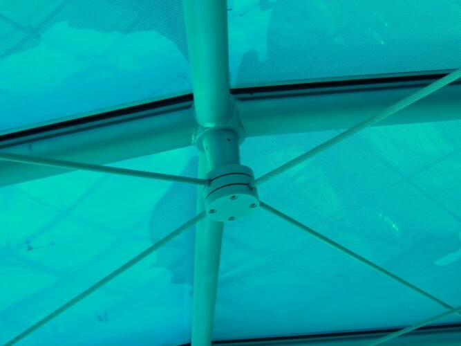 Seilhinterspannte Stahlkonstruktion im Durchmesser d = 34,0m
